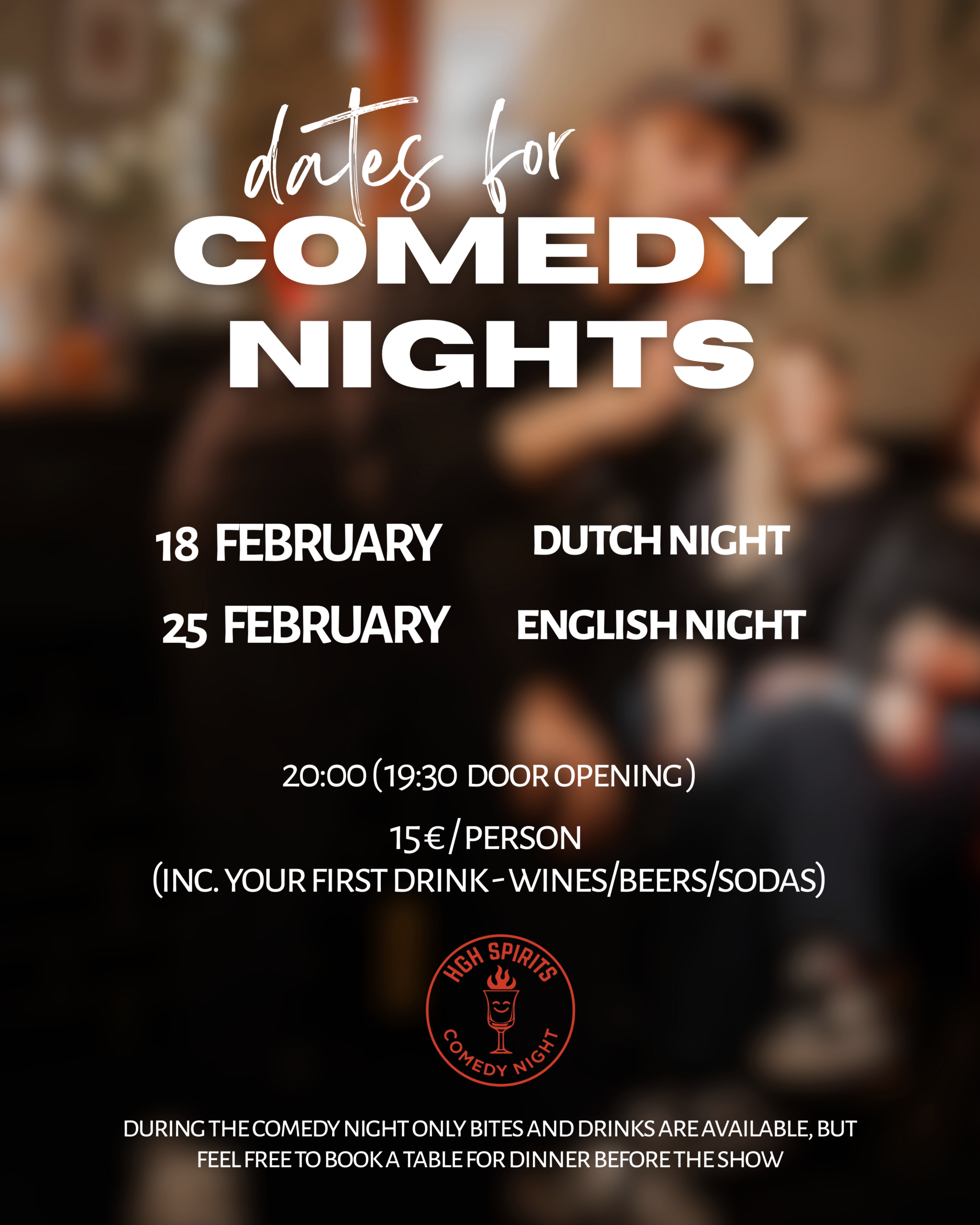 Join us TWO times per month for Oniria's comedy night organised together with High Spirits.